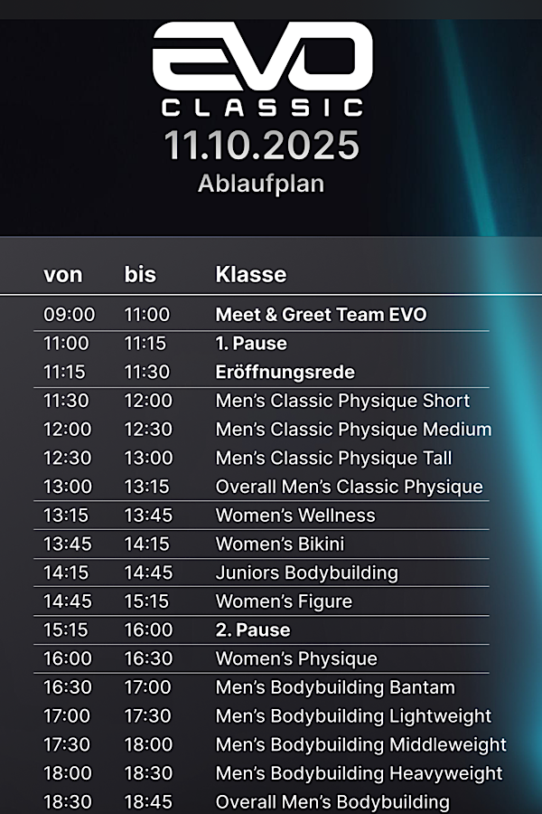 Nicht nur, dass sich die ganze Halle – gefüllt mit jungen Leuten – dankbar erhob, anläßlich einer Gedenkminute zum Tod der bisherigen Veranstalterin. Der Redner ging auch sehr emotional auf die Sportler ein, die für die Vorbereitung so viele Opfer brachten, so viel Schweiß und Tränen während des Jahres zum fließen brachten. Fußballer werden ja während der ganzen Saison von Spiel zu Spiel immer angespornt und ernten Lob und Applaus. Ein Bodybuilder ist ein Einzelkämpfer. Er schleppt sich Tag für Tag alleine in die Mucki-Bude, stemmt seine Gewichte, ohne eine Mannschaft zur Motivation an seiner Seite zu haben. Ein Bodybuilder isst gefühlt Tag ein Tag aus das gleiche. Und auch die Angehörigen hat er erwähnt, die ebenfalls viele Opfer bringen, weil sie vor allem die Launen der hungernden und oft entkräfteten Athleten aushalten müssen. Ja und davon kann ich wirklich ein Lied singen!