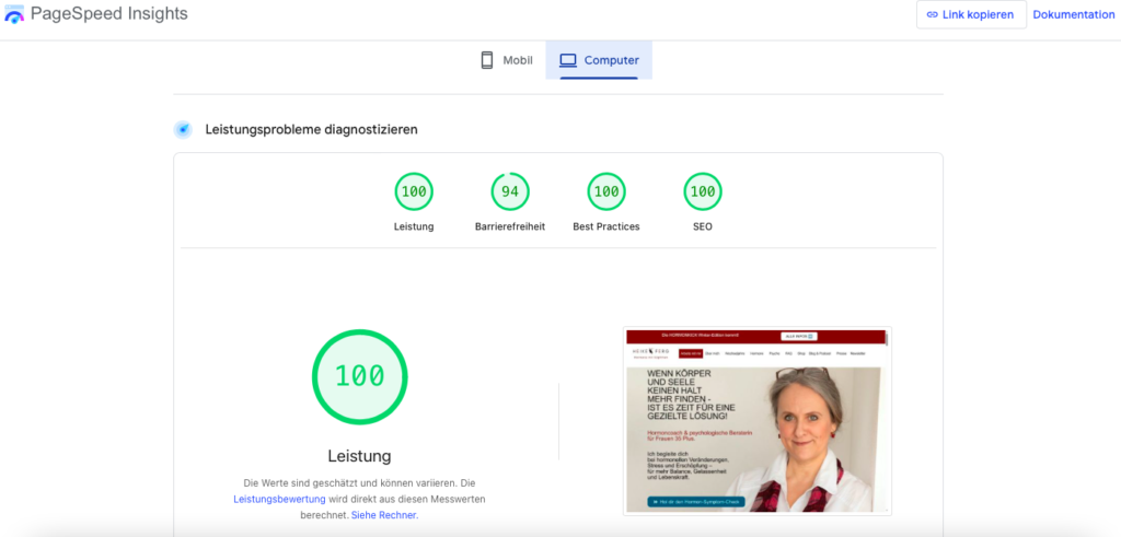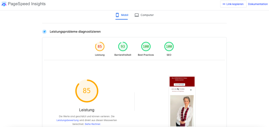 (Individuelle Beratungssessions) - PageSpeed Insight: da hat sich die Arbeit der letzen 2 Jahre wirklich gelohnt.